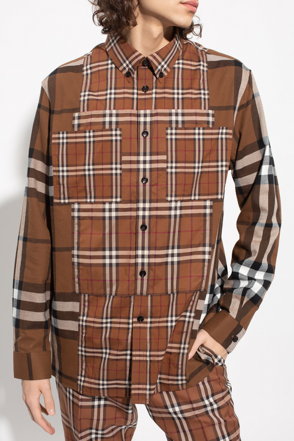 Brown, white and black shirt from Burberry. Crafted from cotton, this garment features button fastening, check pattern, slip pocket and long sleeves with button cuffs.