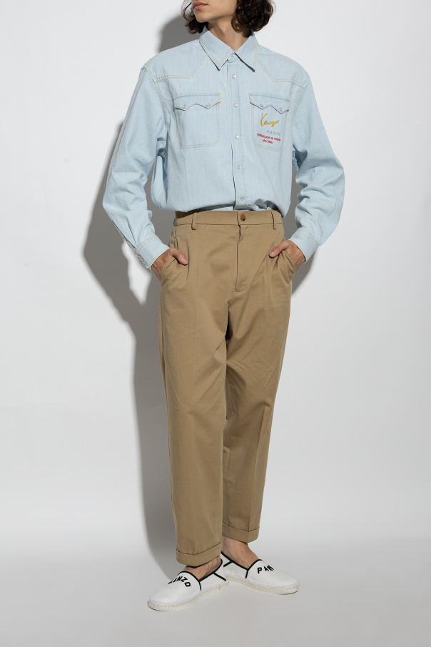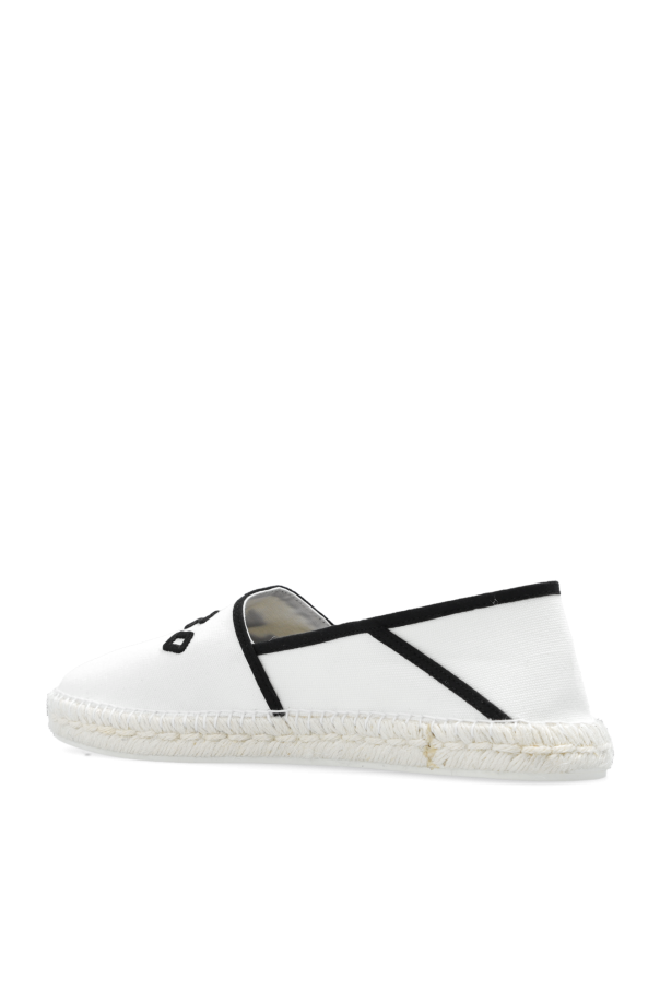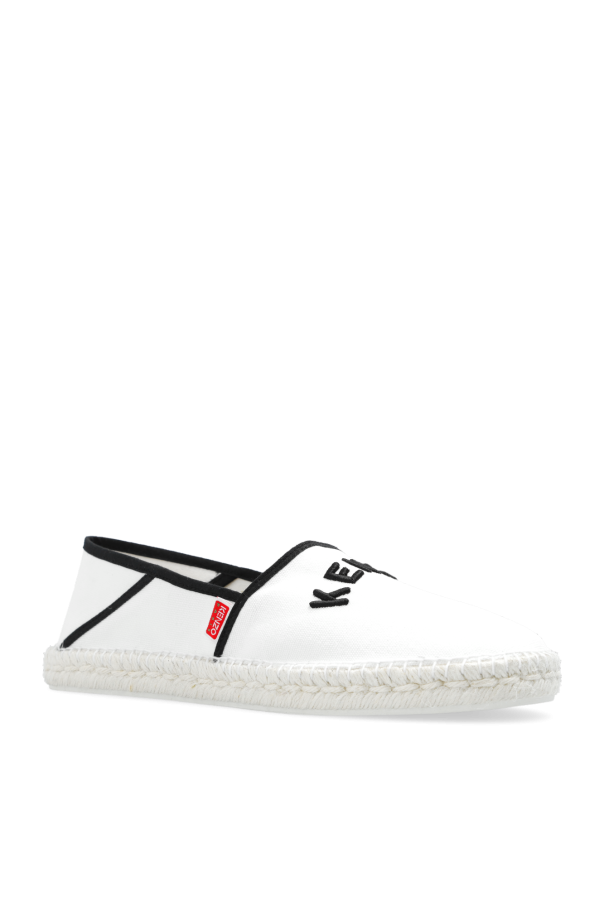 White ‘KENZO Paris’ espadrilles from Kenzo. Made of eco cotton with black fabric straps, this pair features a black logo embroidery and white rubber sole with woven details in cream.