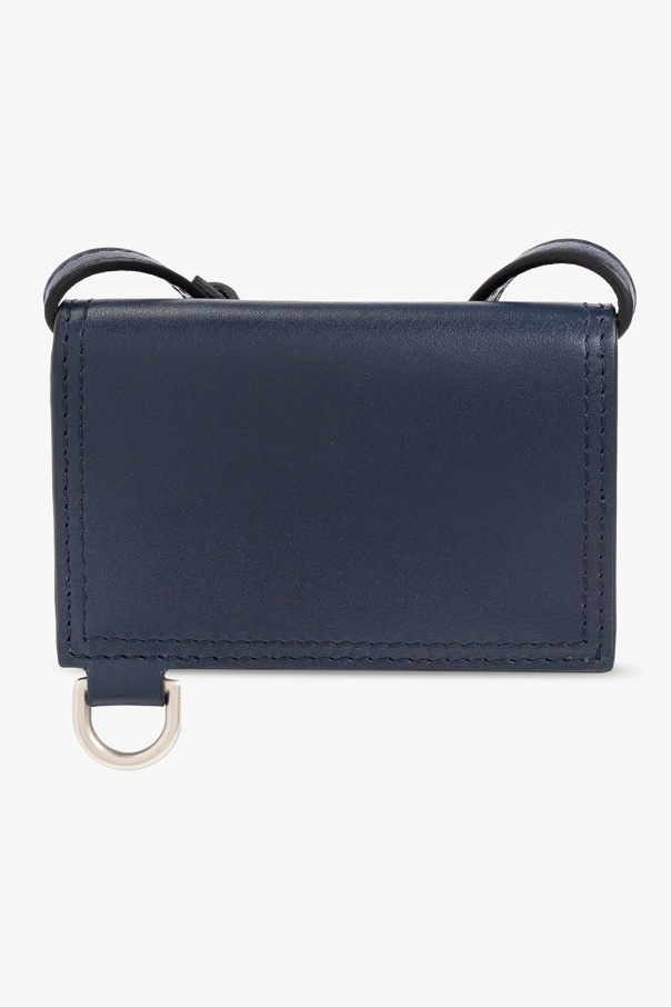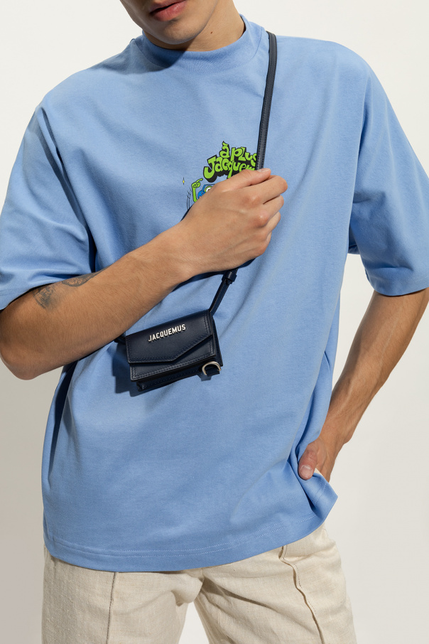 Navy blue ‘Le Porte Azur’ pouch from Jacquemus. Made from leather, this design secures with a snap and showcases a metal logo plaque on the front, an adjustable shoulder strap, silver-tone metal hardware and one internal compartment.