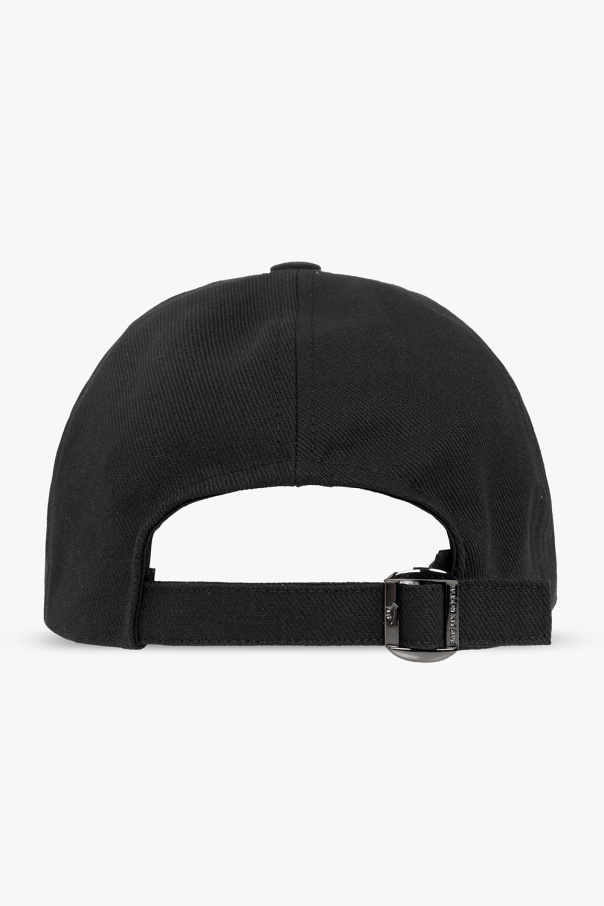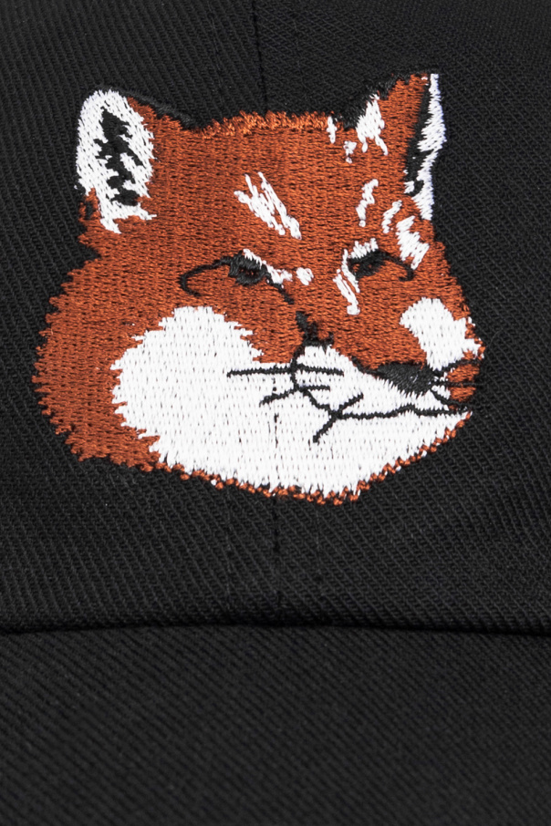Black baseball cap from Maison Kitsune. Fastened with an adjustable buckle strap, this item is decorated with a logo patch.