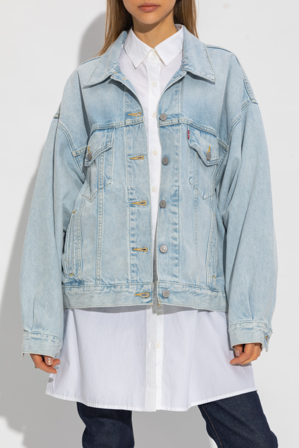 Light blue trucker jacket from Levi’s. Rendered in denim, this style fastens with buttons and features a red logo label on the front, two welt pockets, two flapped chest pockets with buttons and long sleeves with button cuffs.