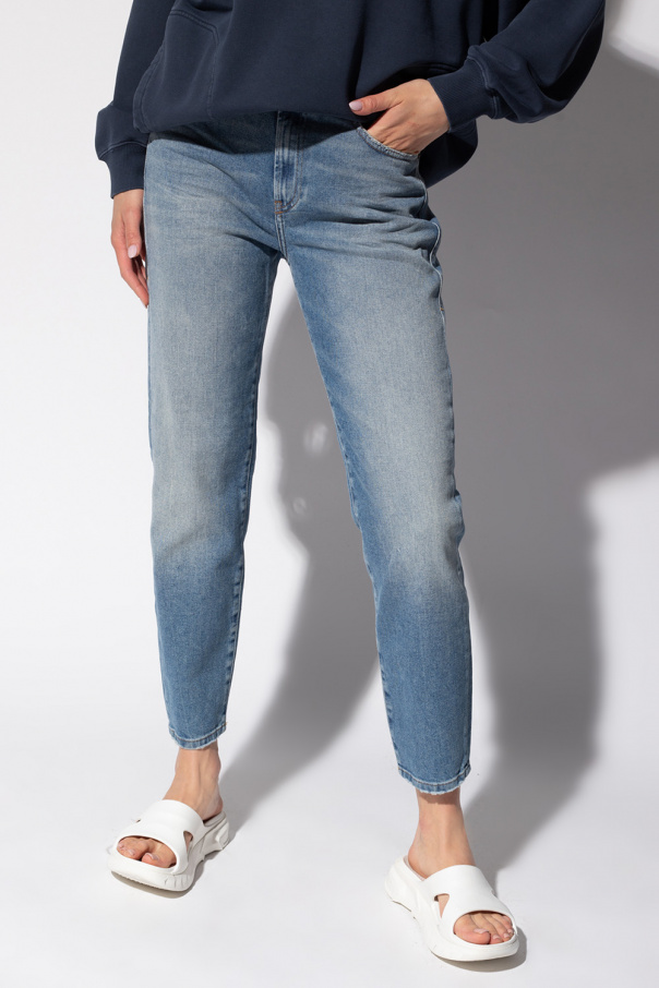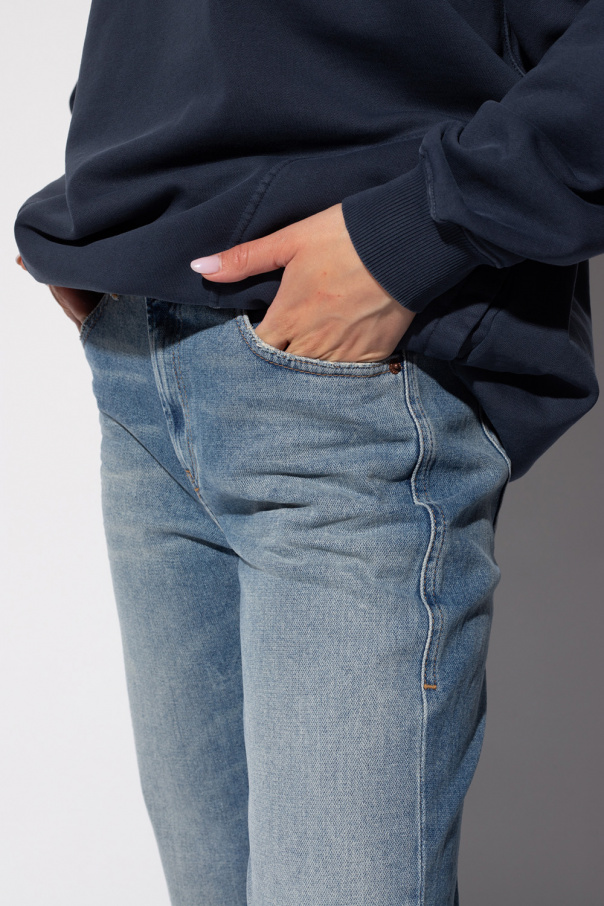 Blue ‘D-Joy’ slim jeans from Diesel. Fastened with a zip fly and button, this pair is complete with three front pockets and two back pockets.