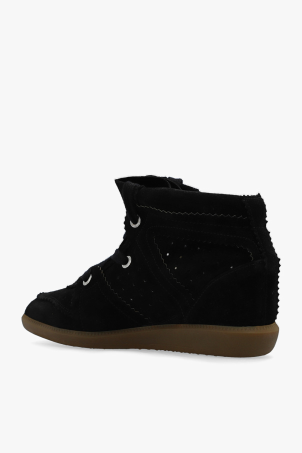 Black ‘Bobby’ wedge boots from Isabel Marant. Made of suede, this lace-up pair features decorative perforations and brown rubber sole.