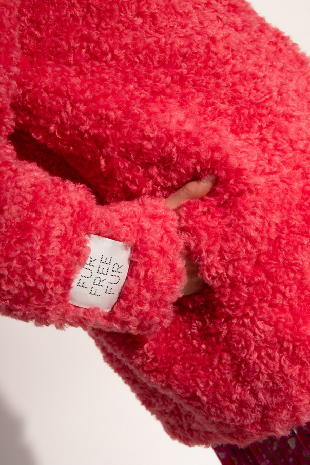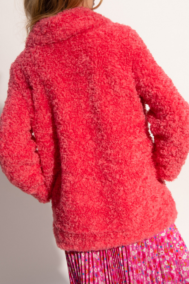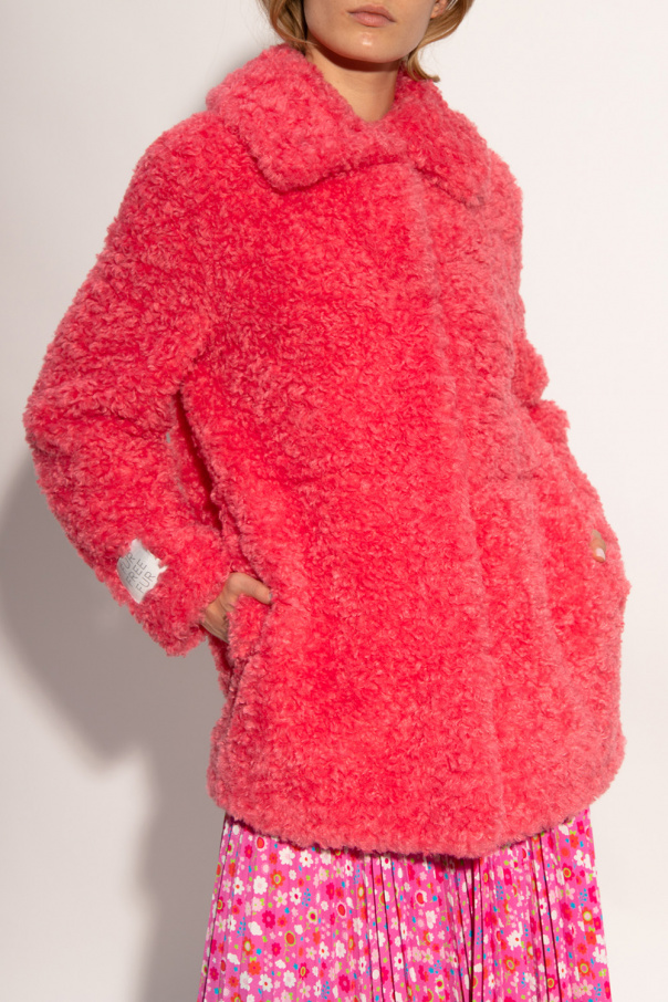 Pink coat from Stella McCartney. Crafted from faux-fur, this style features hook closures, a white patch and two frontal slip pockets.