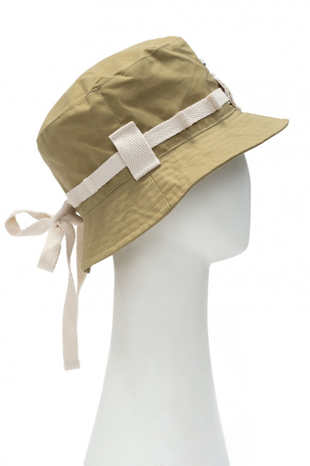 Green hat from Jacquemus. Crafted from cotton, this design features a geometric pattern, beige drawstrings and a silver-tone logo detail.