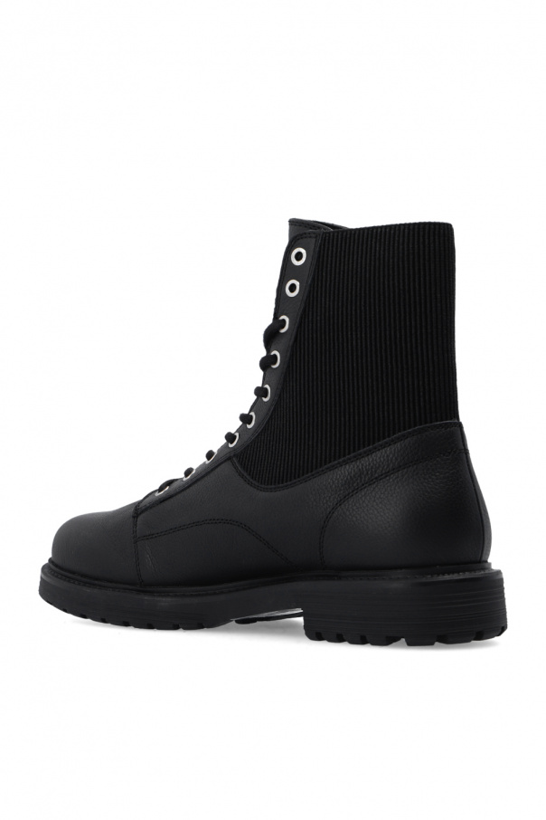Black 'D-Alabhama' combat boots from Diesel. Made of cow leather, this lace-up model features elastic panels on the sides, an embossed logo on the tongue and a black rubber sole at the base.