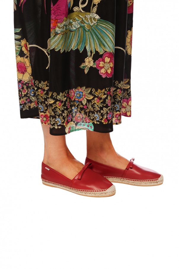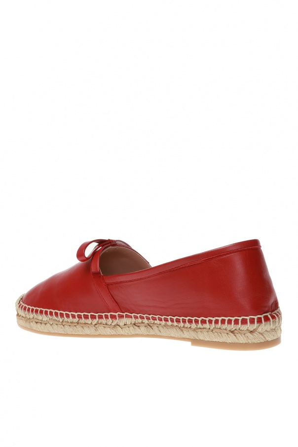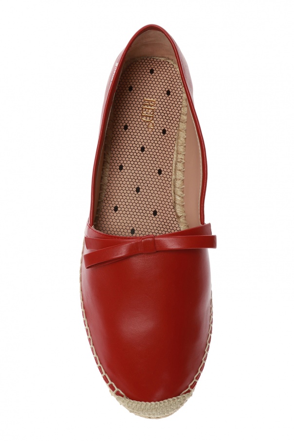 Red espadrilles from Red Valentino. Made of calf leather. Bow on the front. Beige rubber sole.