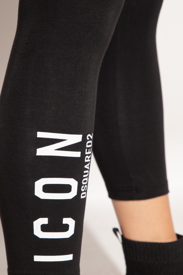 Black leggings from Dsquared2. Made of cotton, this pair features an elastic waistband, printed logo pattern in white and cropped legs.
