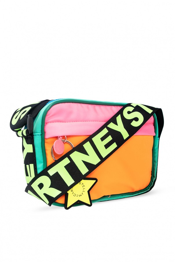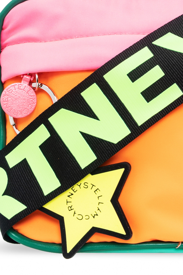 Multicoloured shoulder bag from Stella McCartney Kids. Crafted from fluorocarbon-free recycled polyester with water repellent properties, this design features a two-way zip fastening, a zip pocket with a detachable star charm on the front, an adjustable strap with a printed logo, and one internal compartment.