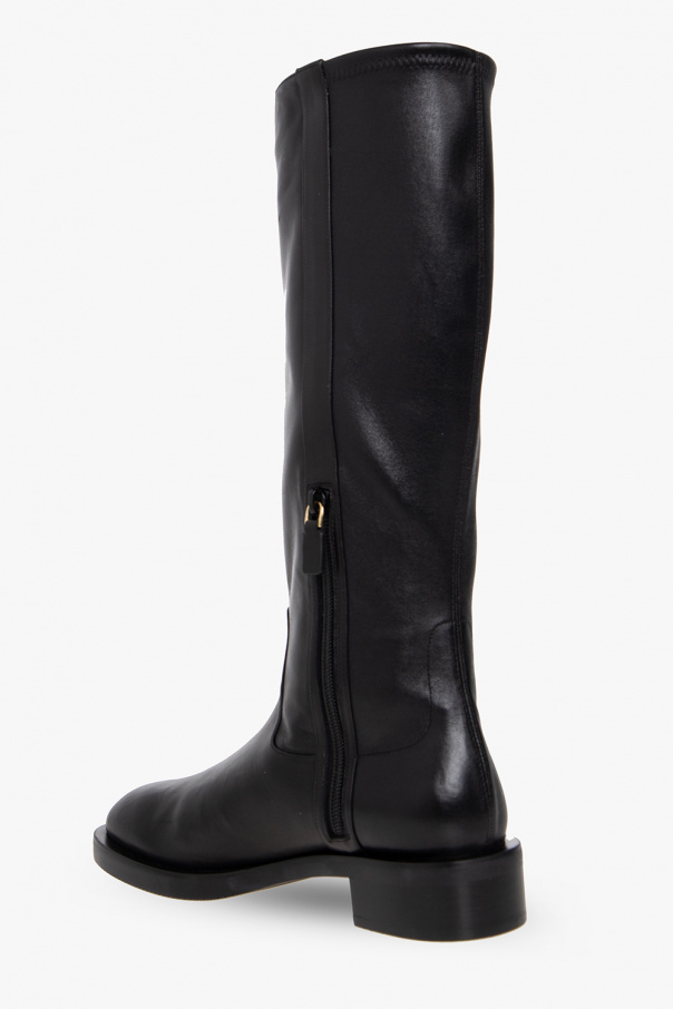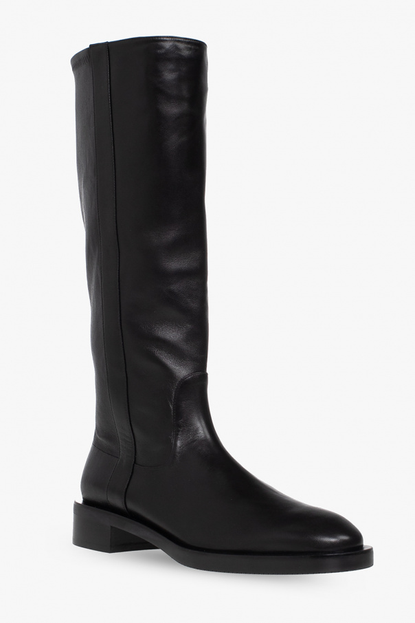 Black ‘Sadie’ boots from Stuart Weitzman. Crafted from leather, this model sits on a black rubber sole and features a side zipper.