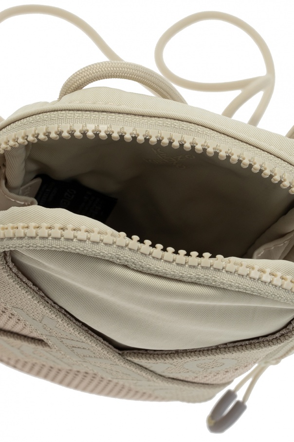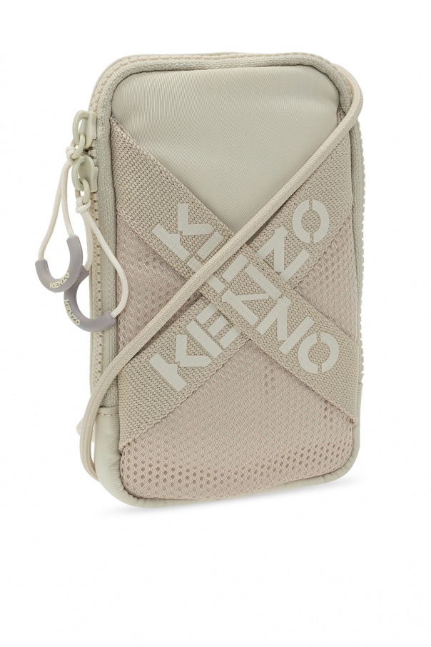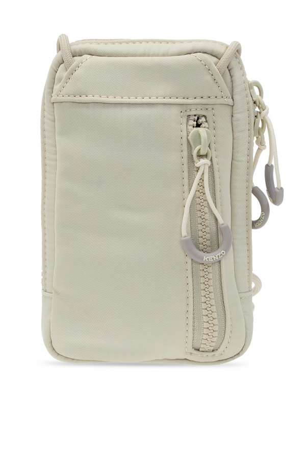 Beige phone pouch from Kenzo. Fastened with a two-way zip, this item features grosgrain straps printed with a cream logo pattern, a front zip pocket, shoulder strap and one internal compartment with four card slots.