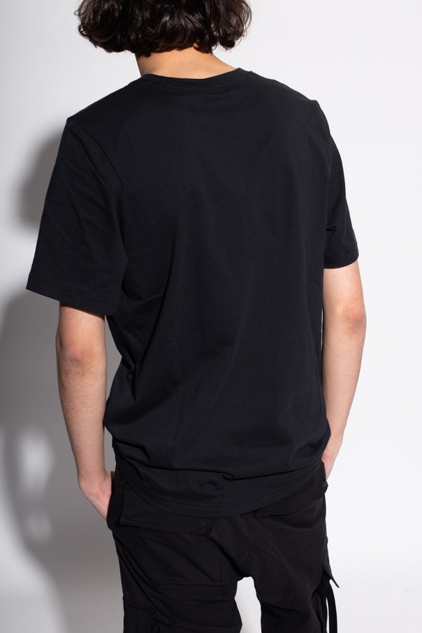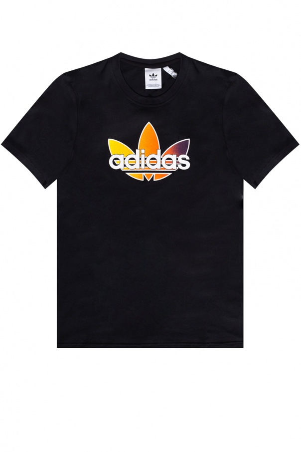 Black T-shirt from ADIDAS Originals. Made of cotton, this short-sleeved design features a white, orange and yellow logo pattern as well as a ribbed round neck.