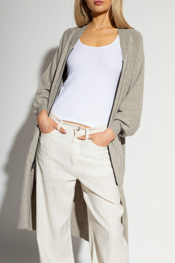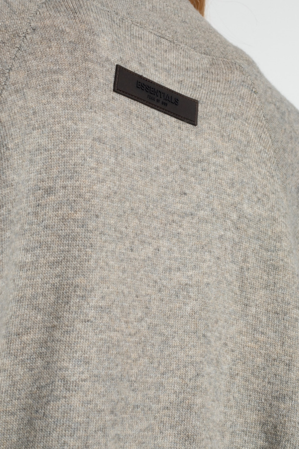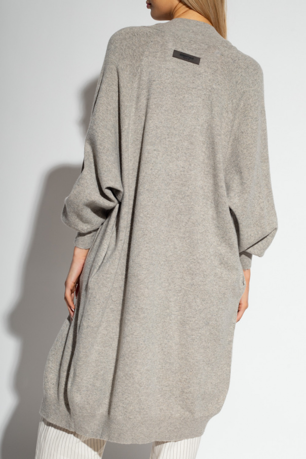 Grey cardigan from Fear Of God Essentials. Accentuated with a black logo patch at the back, this style features a zip fastening, two slip pockets and elasticized trims on the bottom hem and cuffs.