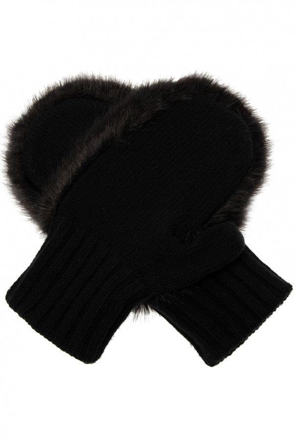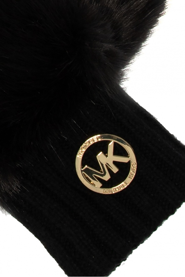 Black fleecy gloves from Michael Michael Kors. Knitted from wool-blend fabric, this accessory showcases distinctive gold-tone logo details.