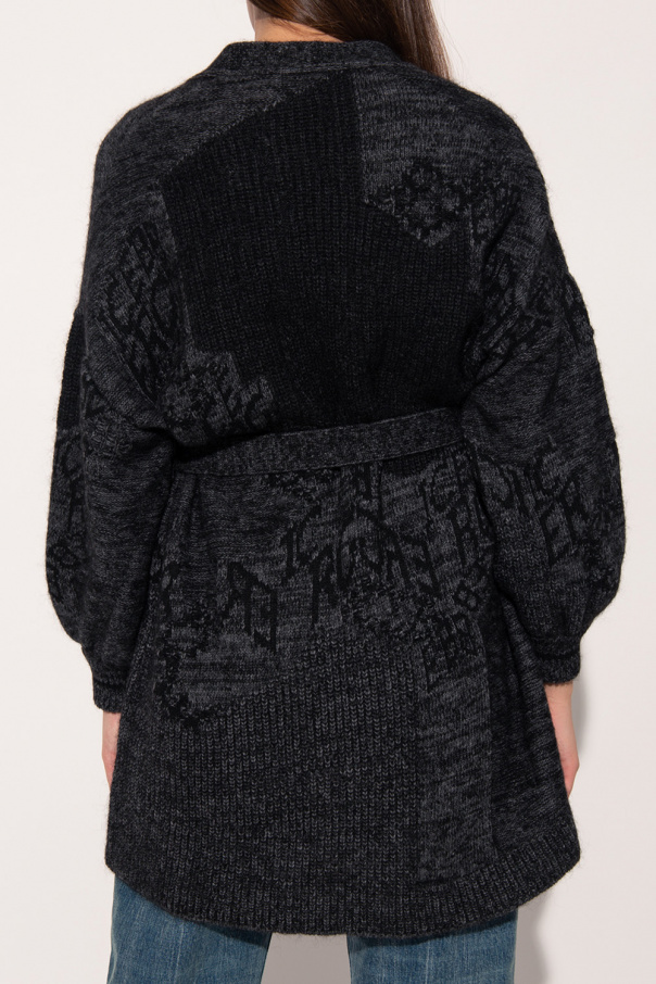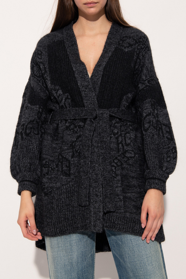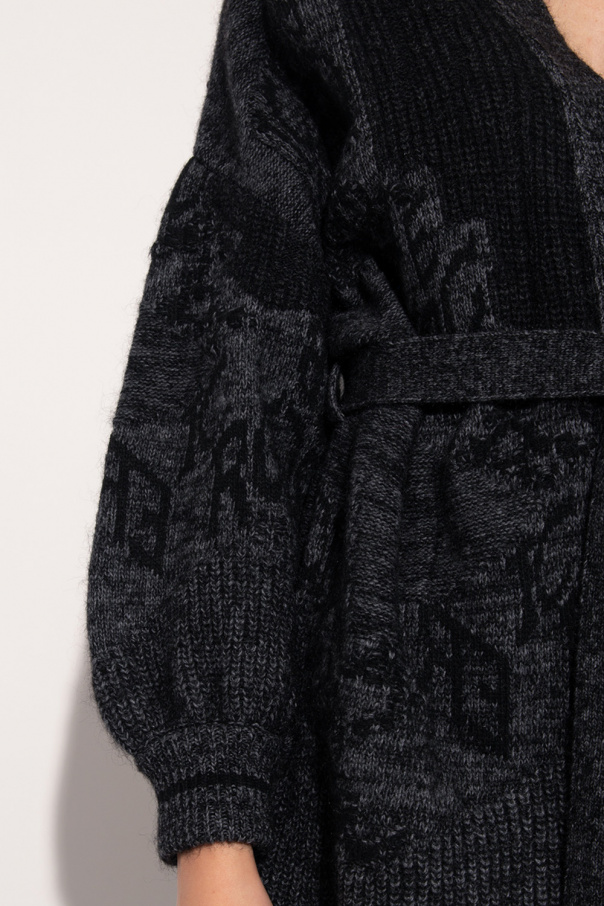 Black and grey cardigan from Iceberg. Enriched by a graphic motif with the brand's logo, this style features a waist-cinching belt and elasticized trims on the bottom hem and cuffs.