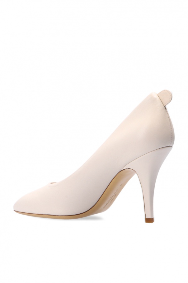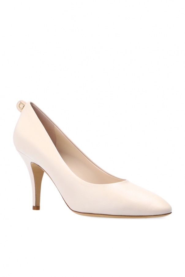 Beige ‘Judy’ stiletto pumps from Salvatore Ferragamo. Enriched with a silver-tone logo, this calf leather-crafted pair sits on a black leather sole.