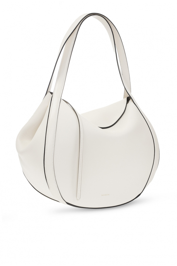 Cream ‘Lin’ handbag from Wandler. Crafted from leather, this item secures with a magnetic fastener and features two half-round handles, a back pocket with a snap closure, gold-tone metal hardware and one internal compartment with a slip pocket.