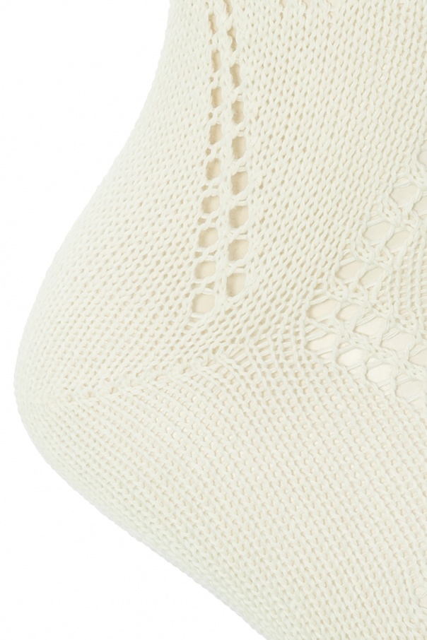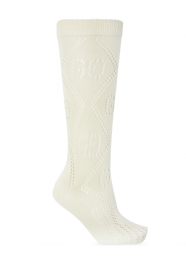 Cream socks from Gucci. Crafted from stretch cotton, this pair showcases embroidered logo pattern and elastic edge.