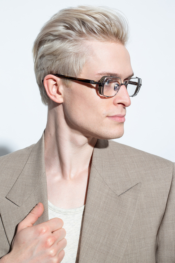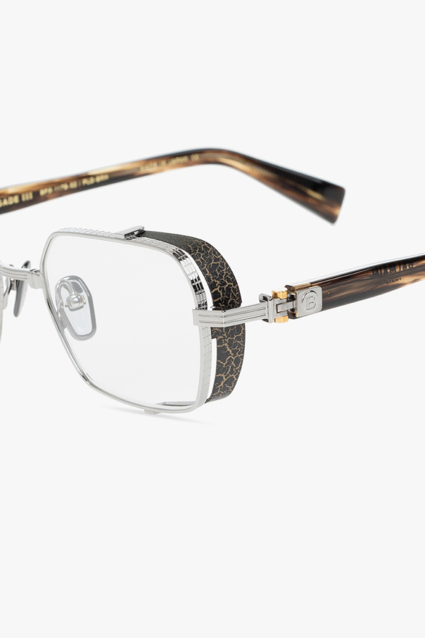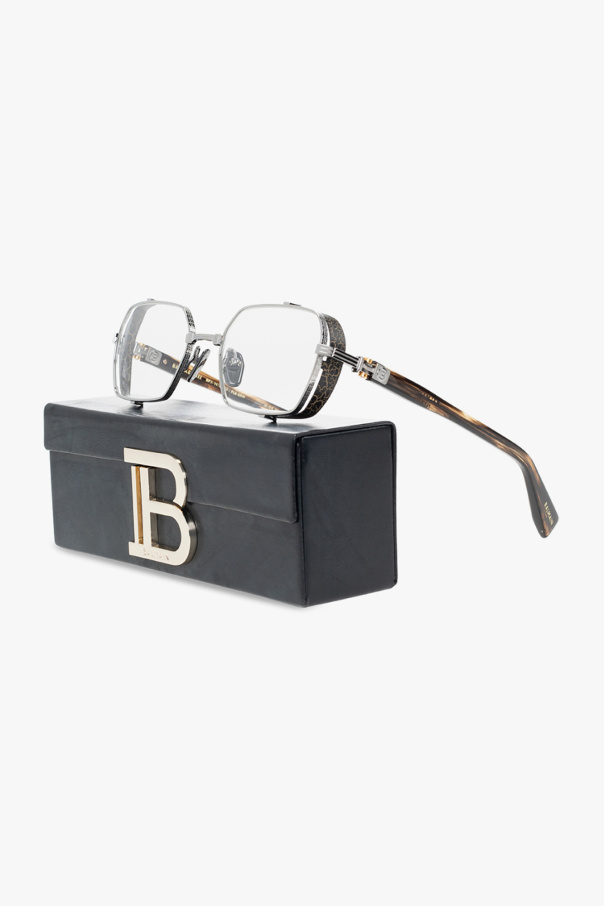 Silver-tone, black and beige optical glasses from Balmain. Enriched by a logo, this pair comes with a silver-tone branded leather case.