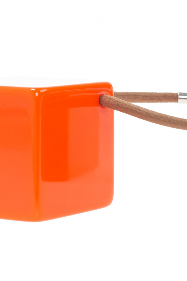 Brown scrunchie from Jacquemus embellished with a geometrical application in orange.