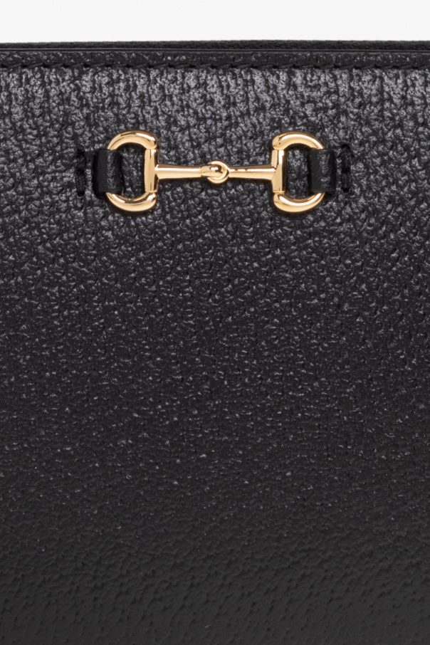 Black wallet from Gucci. Crafted from calf leather, this design features a zip fastening, the brand's signature horsebit hardware, gold-tone metal elements and three compartments, twelve card slots and one coin pocket inside.