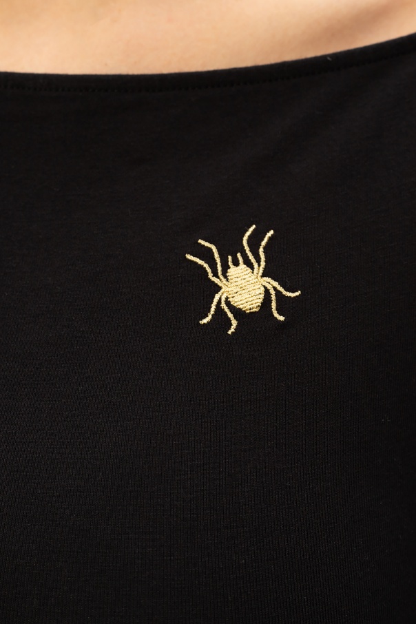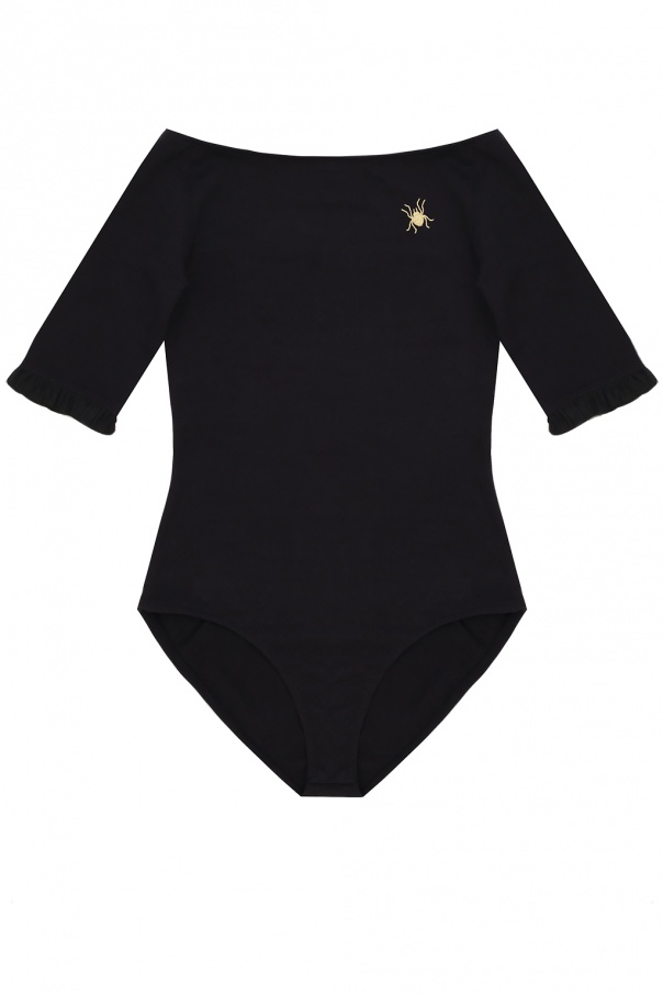 Black body with open shoulders from Puma x Charlotte Olympia. Fastened with snap buttons, this design features a beige logo embroidery, a patch at the back and 3/4 length sleeves with ruffle trims.