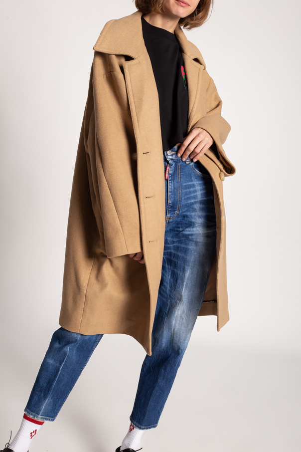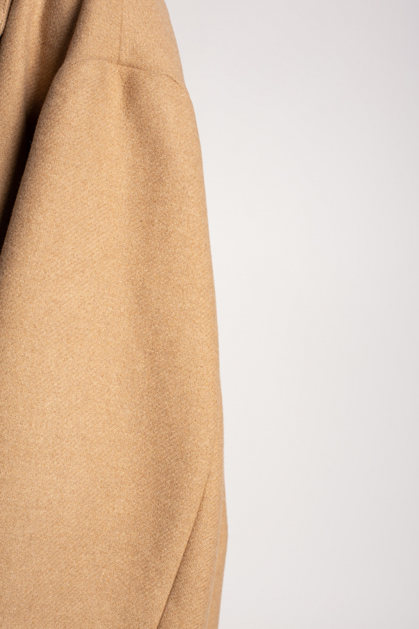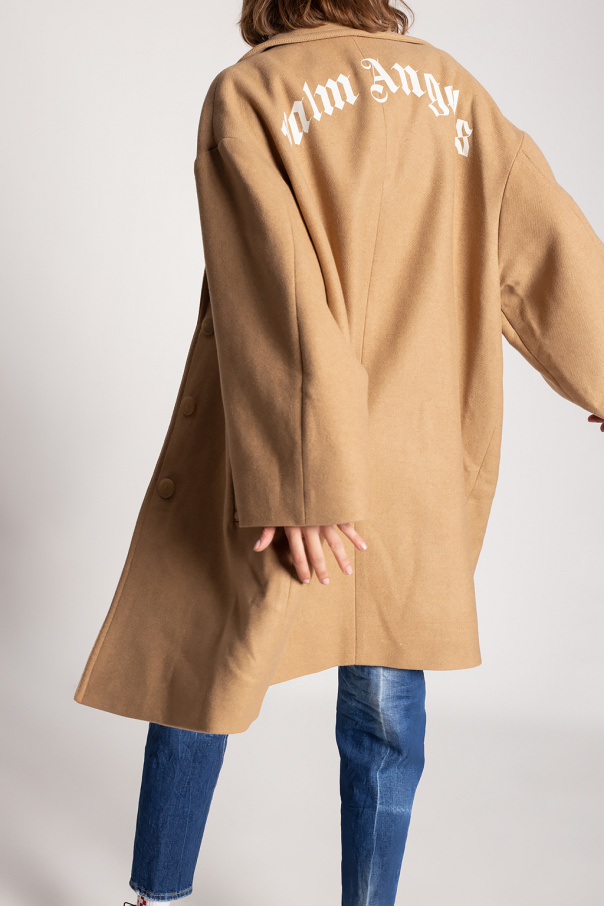 Beige coat from Palm Angels. Embellished with a white logo motif, this style features button fastenings, notch lapels, two slip pockets and long sleeves.