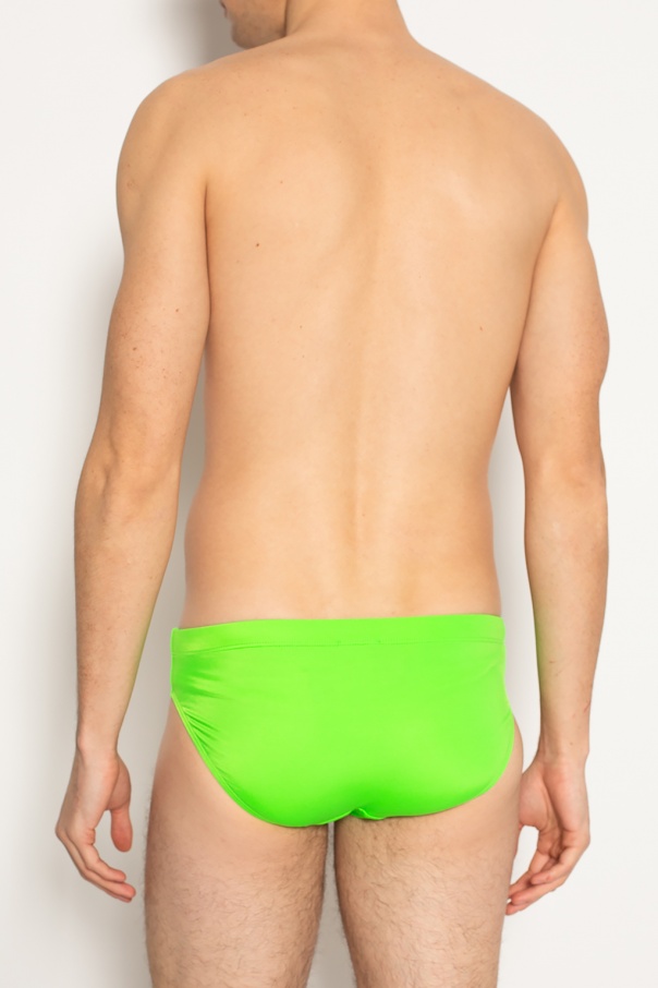 Neon swim briefs from Diesel. Fastened with drawstrings, this item features a logo print in white and green.