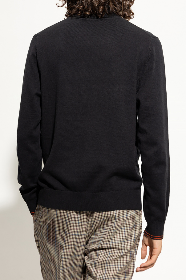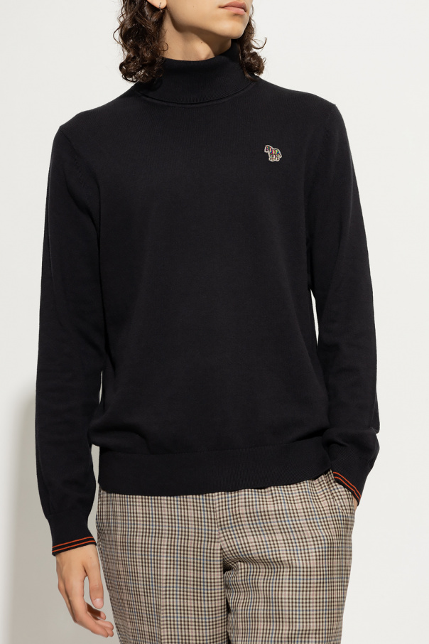 Black turtleneck sweater from PS Paul Smith. Crafted from a cotton and wool blend, this garment features a logo patch and ribbed trims at the stand collar, hem and cuffs.