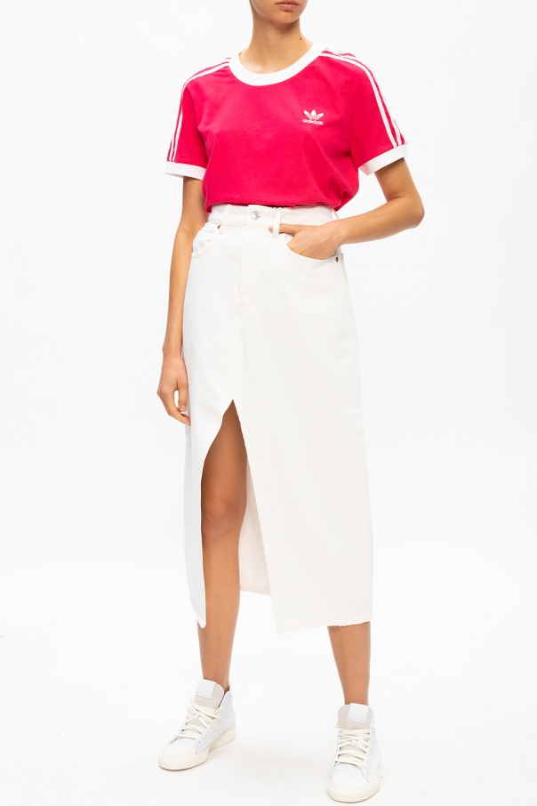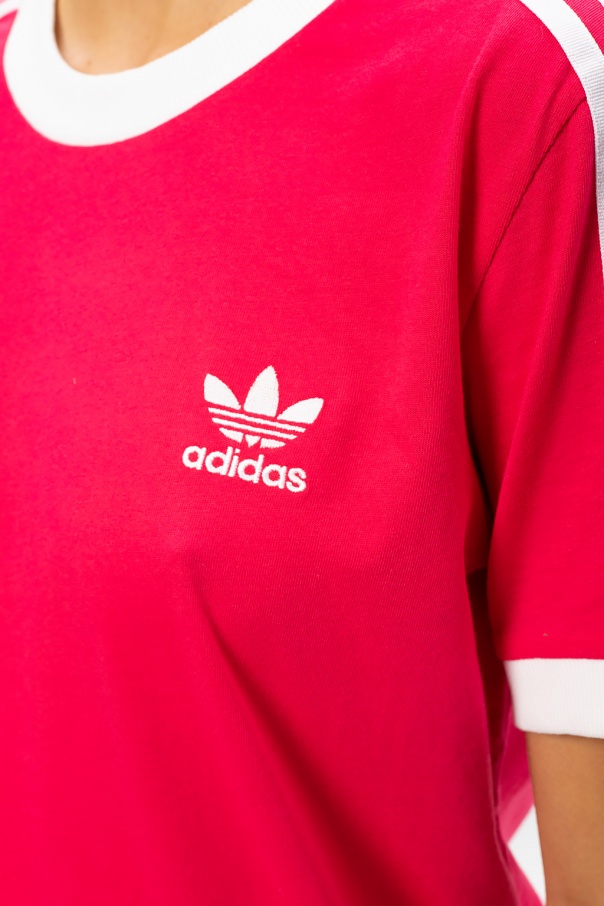 Pink and white crewneck T-shirt from ADIDAS Originals. Crafted from cotton, this design is complete with the iconic three stripes.