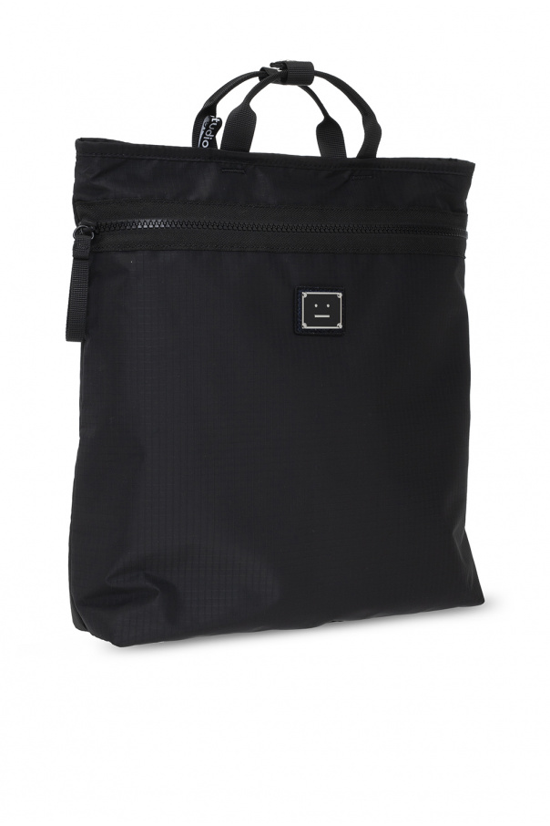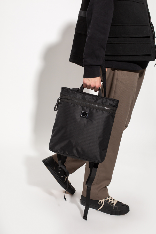 Black backpack from Acne Studios. Enriched by a logo application, this design features a zip fastening, a zipped pocket on the front, two half-round handles, adjustable shoulder straps, silver-tone metal hardware and one internal compartment.