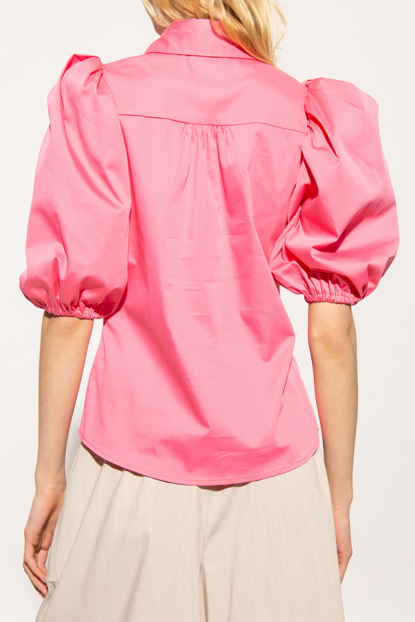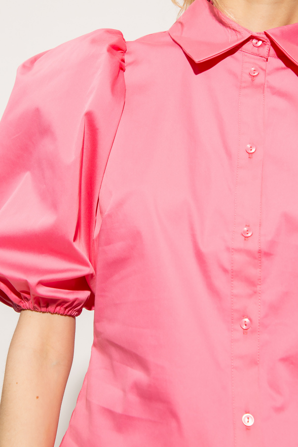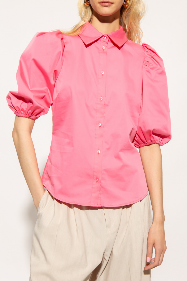 Pink ‘Kira’ shirt from Notes Du Nord. Crafted from a cotton blend, this style features button fastenings and short puff sleeves.