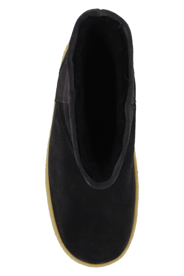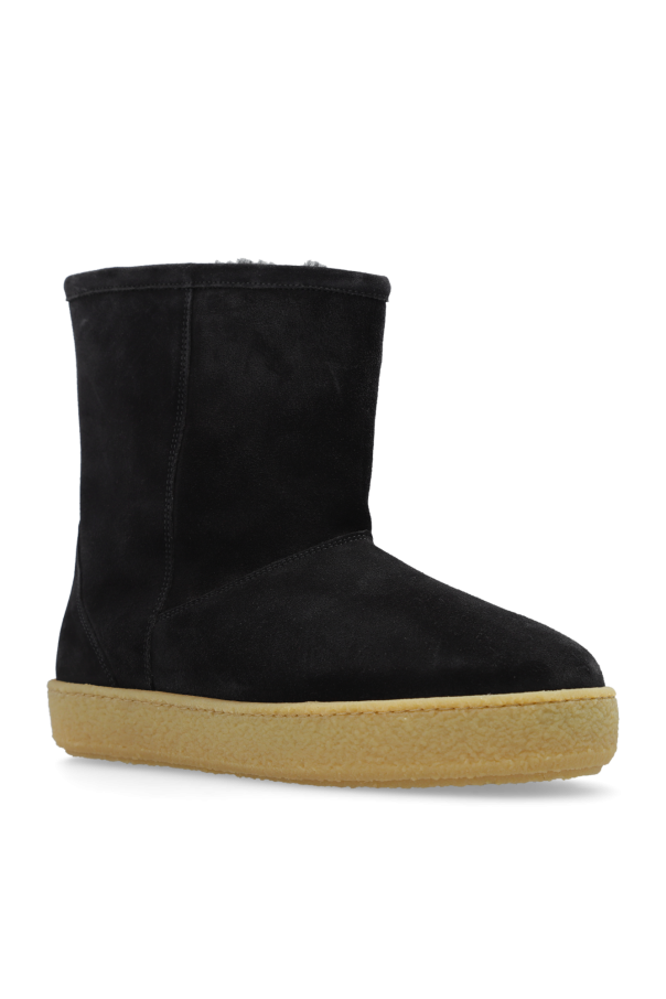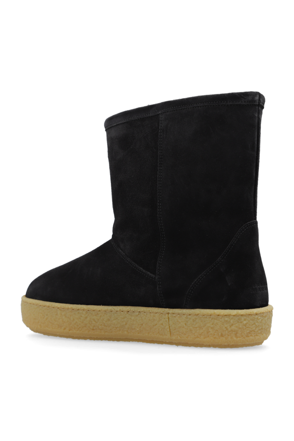 Black ‘Frieze’ snow boots from Isabel Marant. Made from calf suede and lined with black lamb fur, this model sits on a beige rubber sole and features an embossed logo at the back.