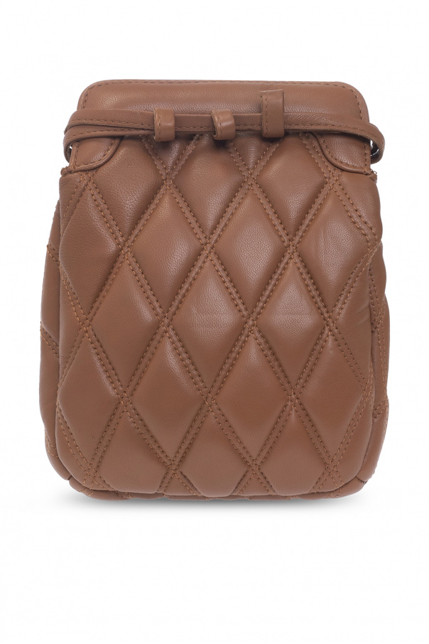 Brown ‘SunneyGZ’ quilted belt bag from Gestuz. Made of lamb leather with the Leather Working Group certificate, this model features a magnetic closure, drawstrings on the sides and one internal compartment with one zip pocket.