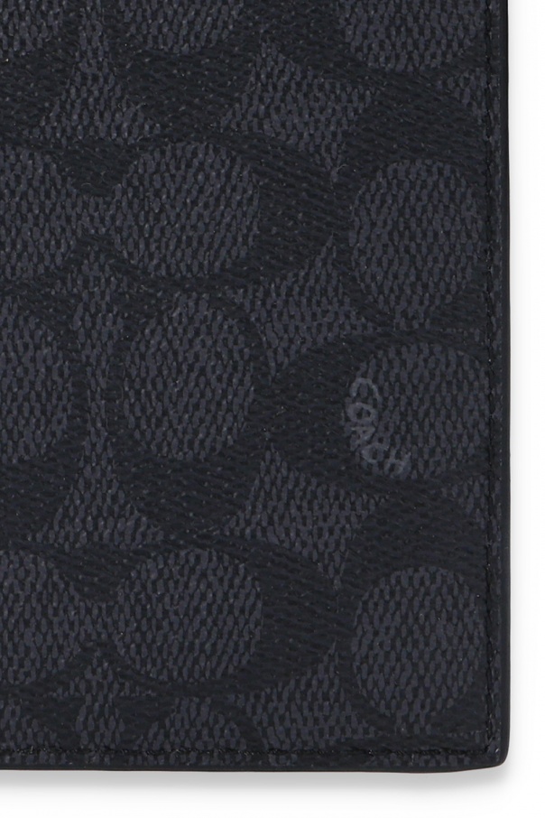 Grey and black passport holder from Coach. Crafted in the brand's signature canvas, this accessory features a passport slot, a slip pocket and three credit card slots on the inside.