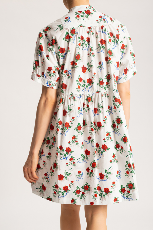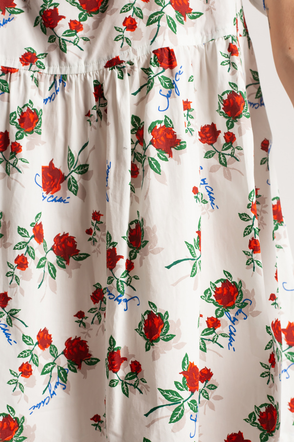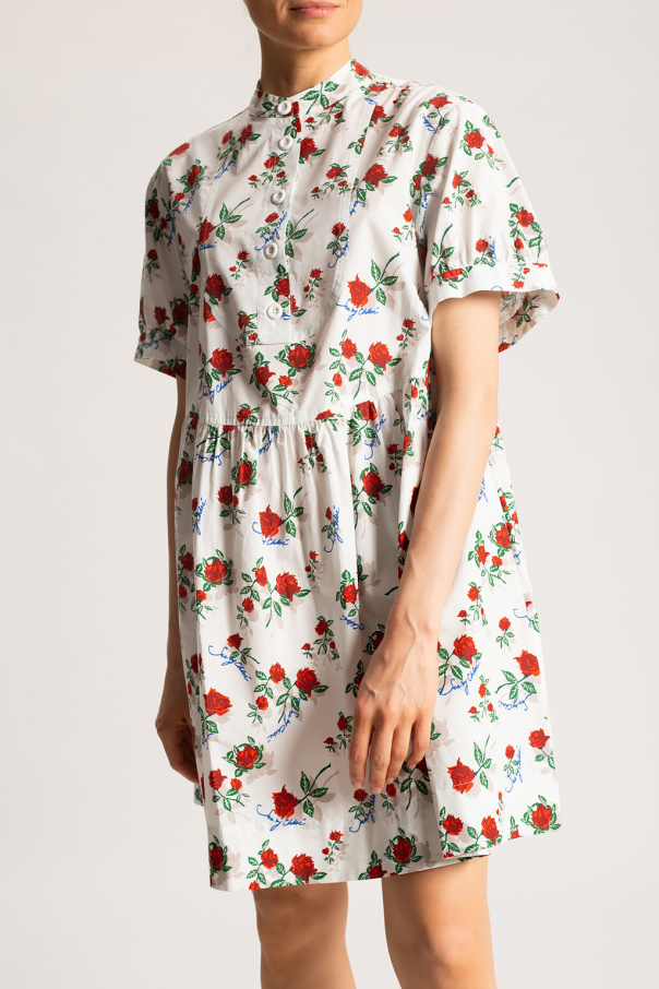 White dress from See By Chloé. Made of cotton, this design features buttons, a multicolored logo, floral print, short sleeves and side pockets.