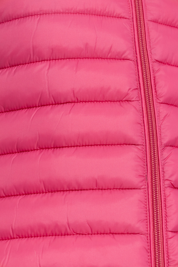Pink ‘Anita’ quilted vest with a standing collar from Save The Duck. Fastened with a two-way zipper, this style features two front zip pockets and a rubber logo patch on the side. It's made with high-density 100% nylon fabric which guarantees weightlessness and fluffiness. It is thin yet resistant, thanks to its features it guarantees water repellency and wind protection, it absorbs humidity and dries rapidly.