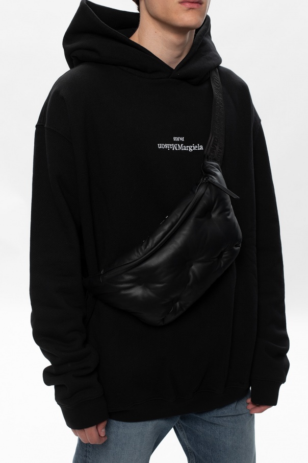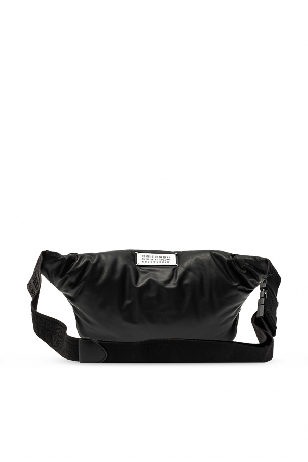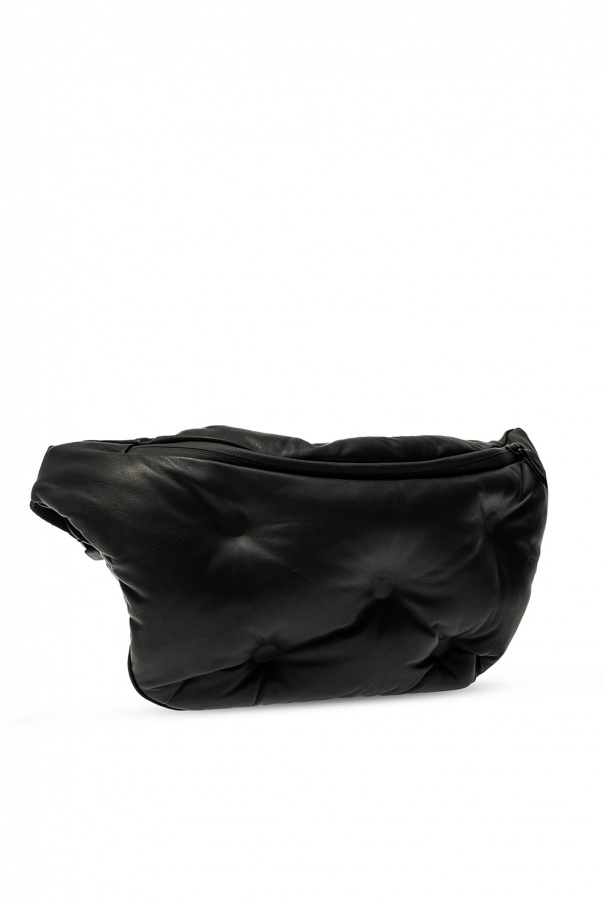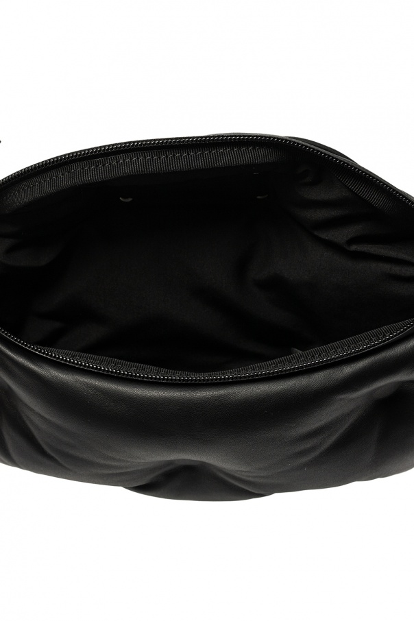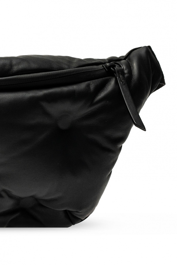 Black belt bag from Maison Margiela. Crafted from leather with distinctively quilted front, this design has zip fastening, a logo-woven strap with adjustable length and interior with one compartment and one zip pocket.