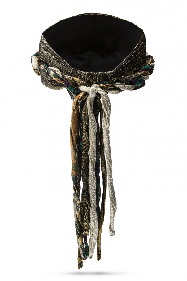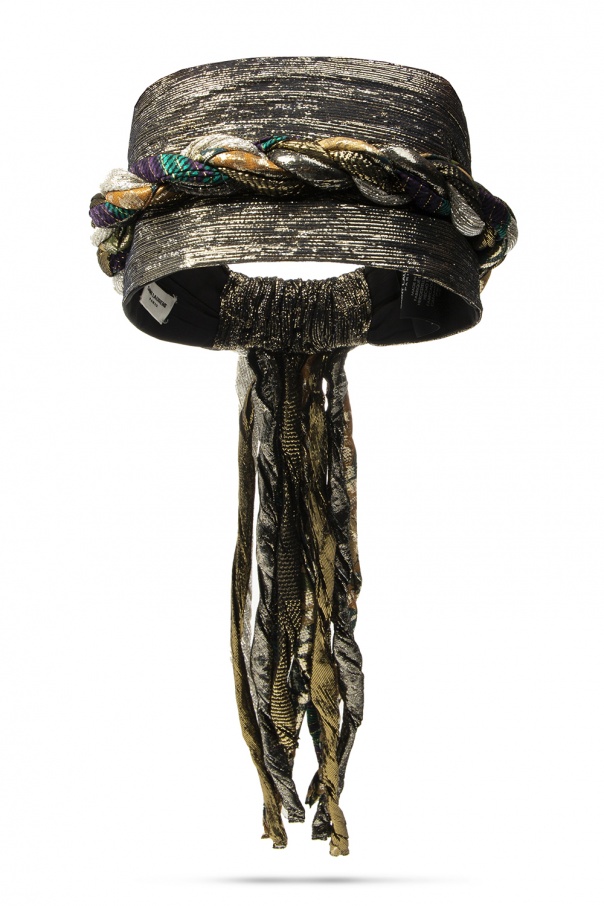 Multicoloured headband from Saint Laurent. Crafted from silk and lurex yarn, this lustrous accessory comes embellished with distinctively-woven detail with fringes and equipped with elastic trim on the back.