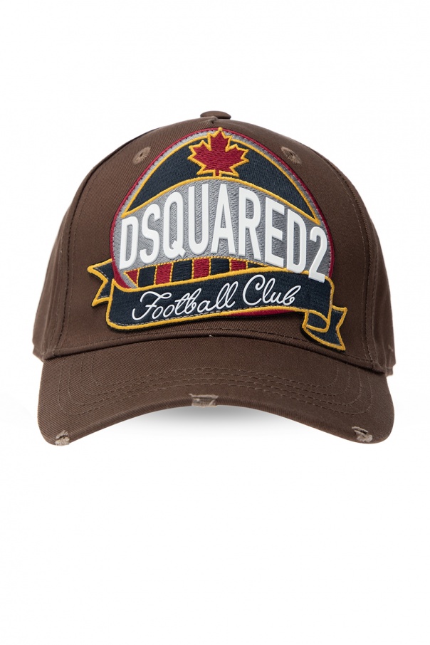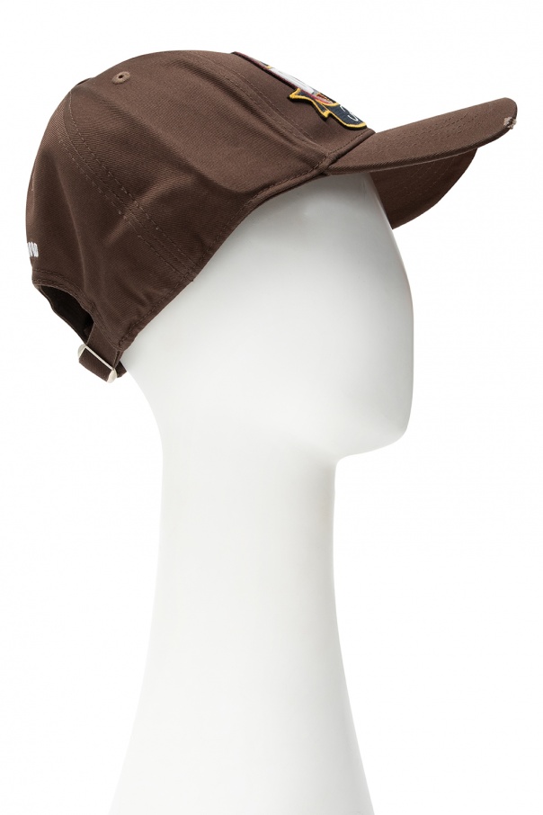 Brown baseball cap from Dsquared2. Featuring a colourful logo appliqué on the front, this cotton-crafted piece of headwear is complete with an adjustable strap and embroidered white lettering on the back.