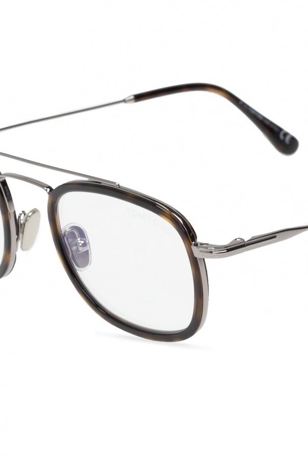 Black and brown optical glasses from Tom Ford. This model is decorated with a metal logo-embossed appliqué in silver-tone and comes with a protective case.