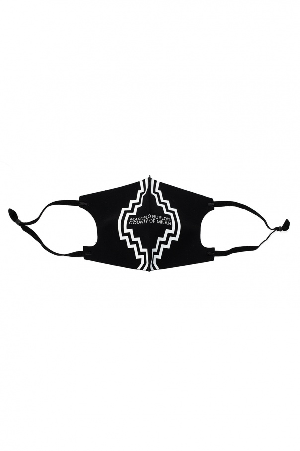 Set of three black face masks from Marcelo Burlon. Crafted from textile material, they are designed with colourful patterns and logo detail.