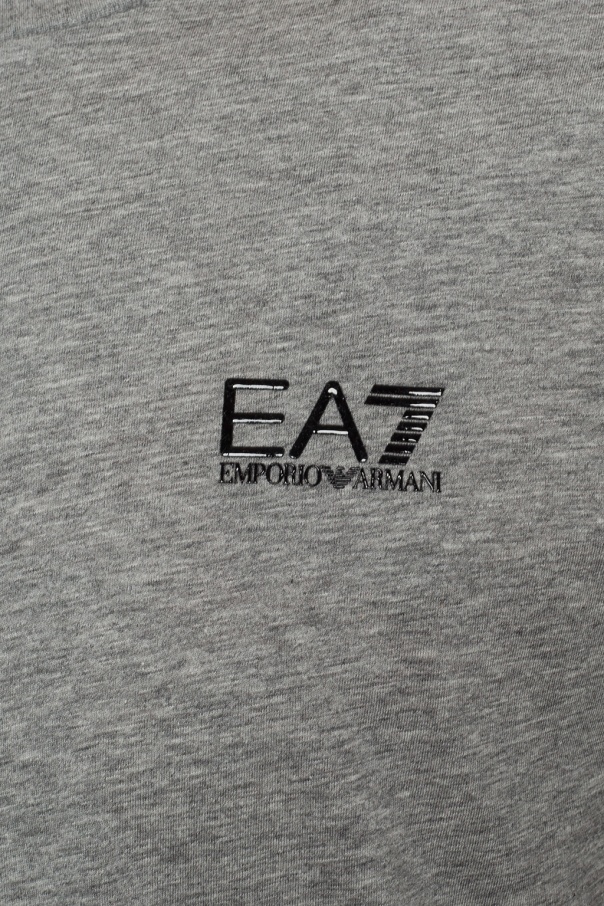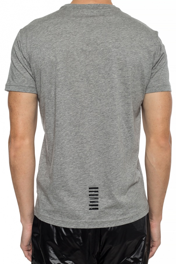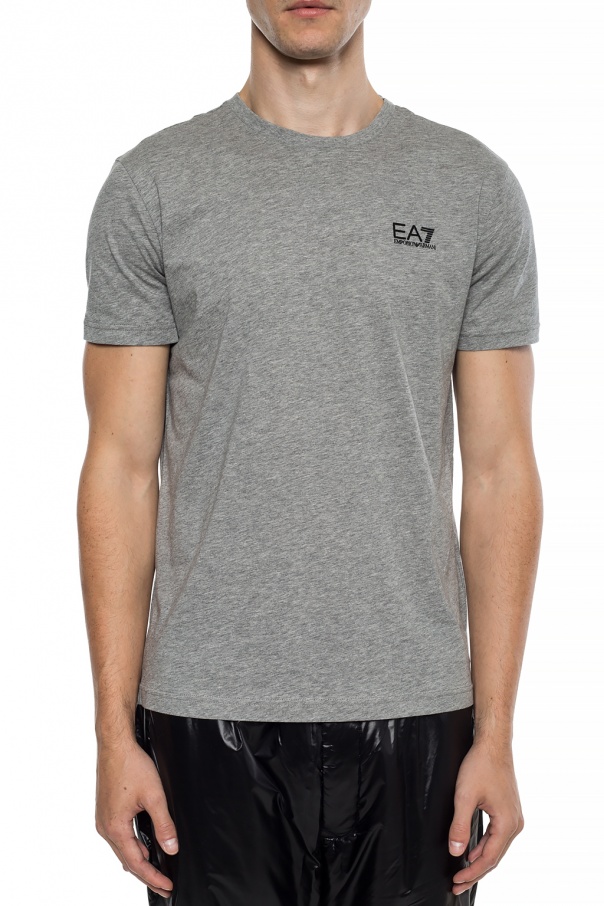 Grey T-shirt from EA7 Emporio Armani. Made of cotton. Front decorated with a black logo print. Round neck. Short sleeves.