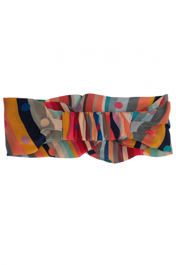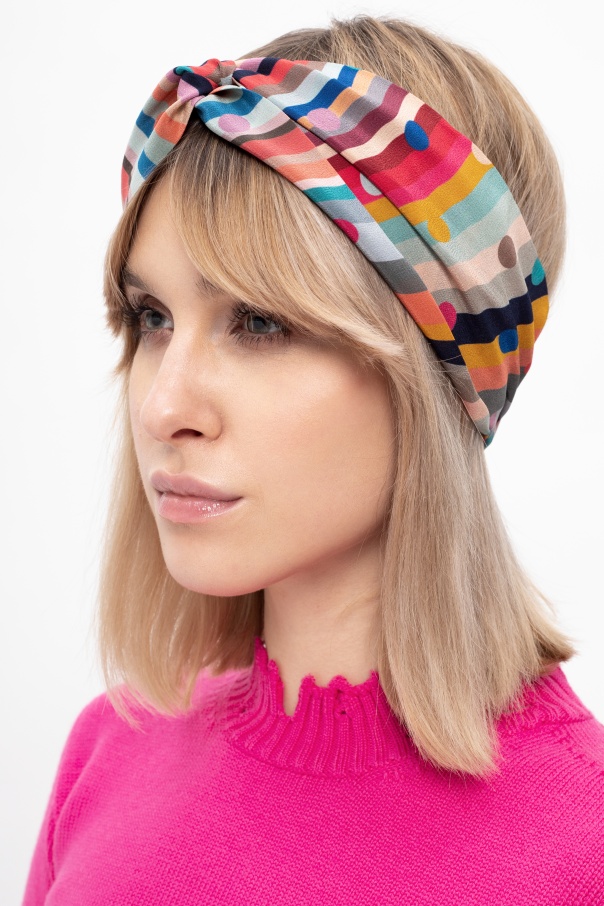 Multicoloured headband from Paul Smith. Woven from silk, this hair accessory showcases a combination of stripes a polka dots.