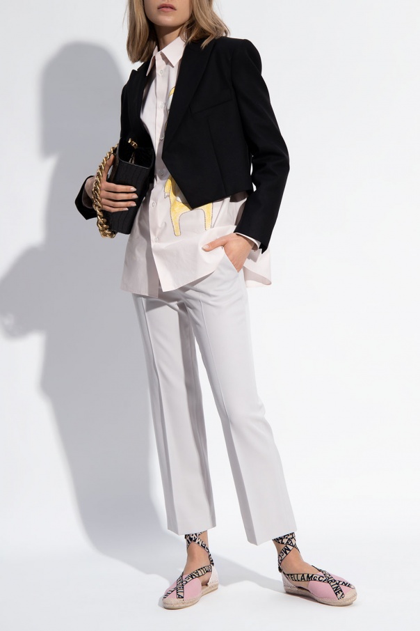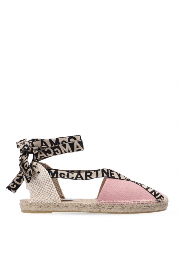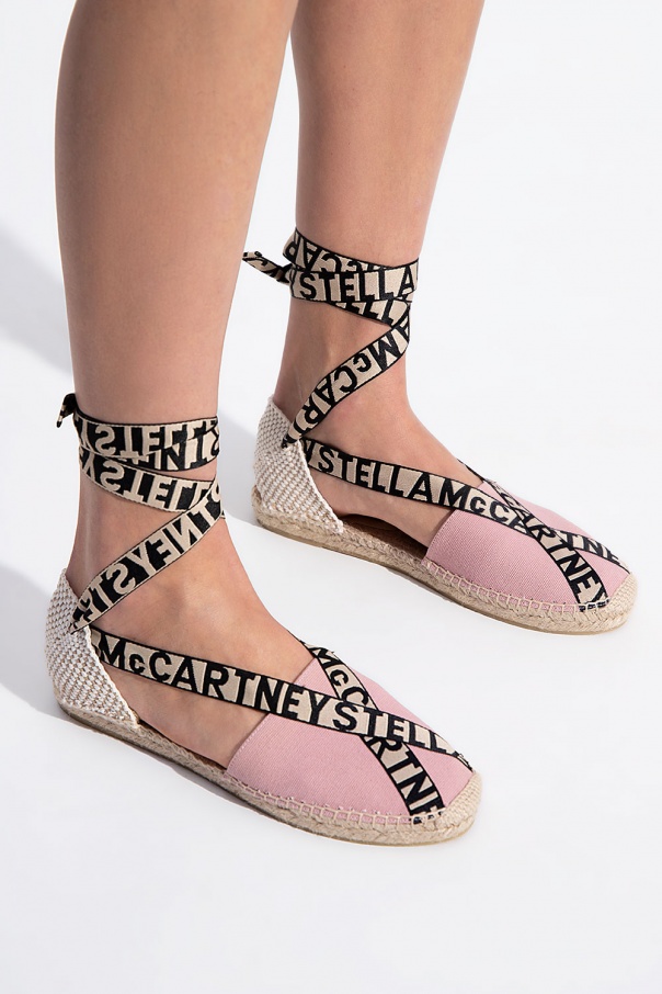 Pink and beige espadrilles from Stella McCartney. Crafted in canvas, this pair sits on a cream rubber sole and features a branded strap fastening at the ankle.