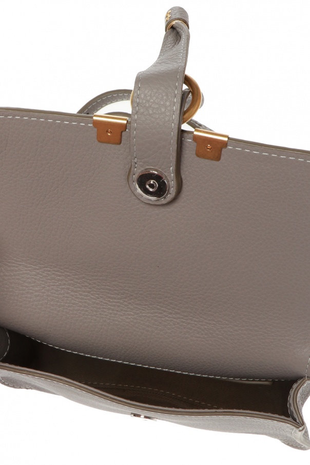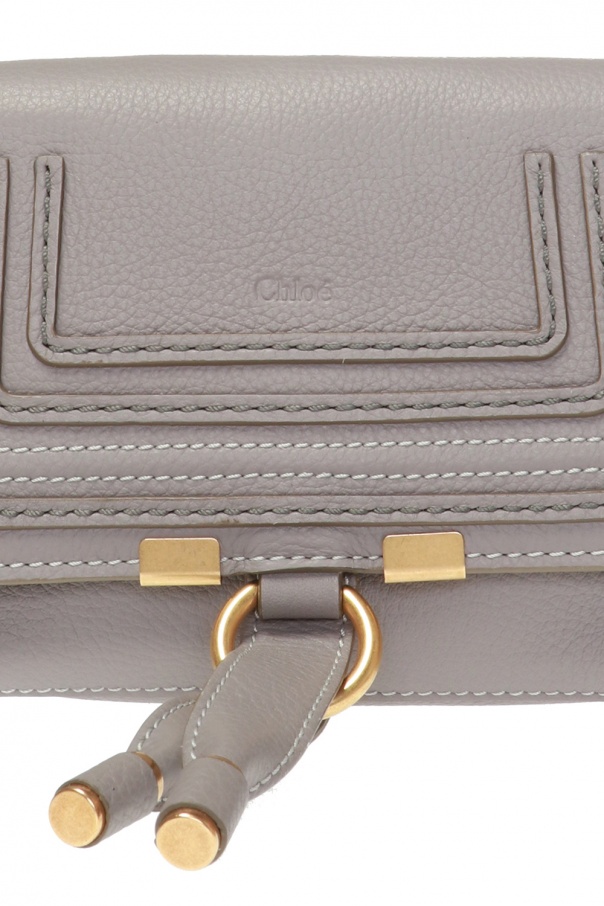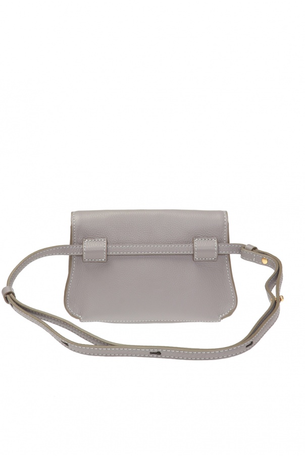 Grey ‘Marcie’ belt bag from Chloé. Crafted from calf leather, this item fastens with a snap and comes decorated with stitching details, an embossed logo and leather tassels. It is complete with an adjustable belt, gold-tone metal hardware and one internal compartment with one slip pocket.