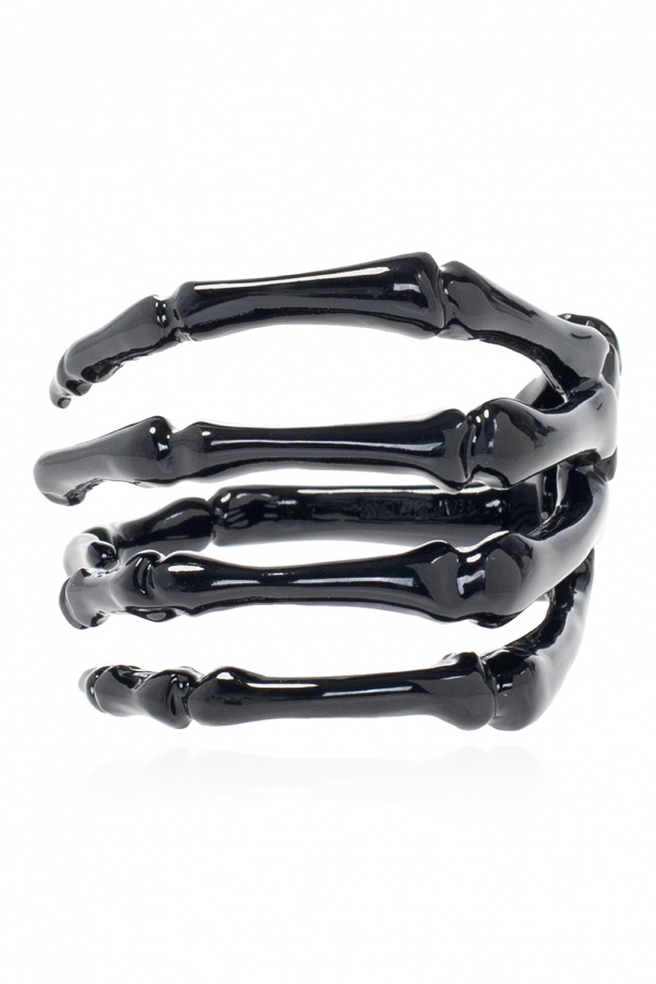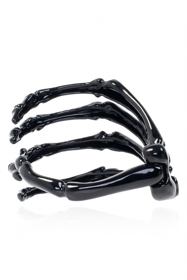 Black bracelet from Raf Simons. Made of brass, this item showcases a motif of a skeleton.