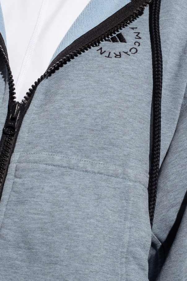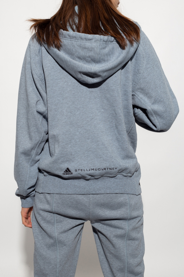 Grey hoodie from ADIDAS by Stella McCartney. Made of cotton from sustainable sources, this model features a two-way zip, black logo embroideries, drawstring hood, two slip pockets and ribbed trims at the hem and cuffs.