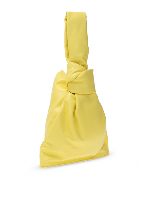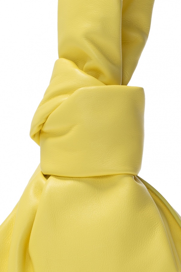 Yellow ‘The Mini Twist’ hand bag from Bottega Veneta. Crafted from calf leather, this design fastens via zipper located at the base and employs a wrist strap accentuated with a knotted detail, gold-tone metal hardware and one internal compartment.
