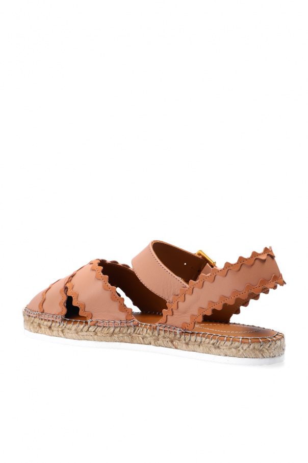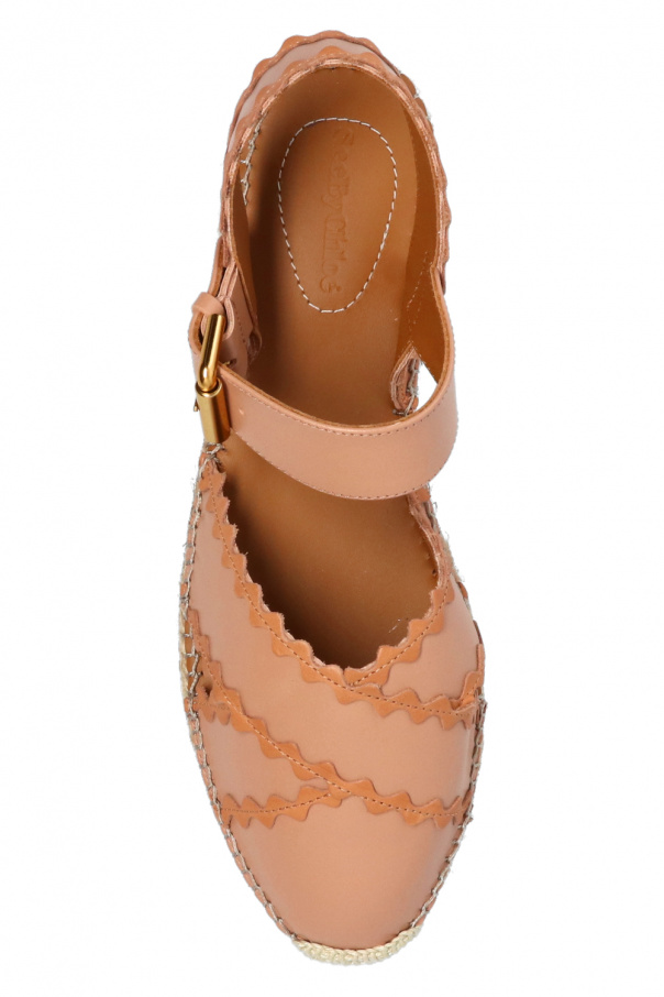 Brown espadrilles from See By Chloé. Crafted from leather, this design features a buckle strap fastening, decorative trims and white rubber sole.